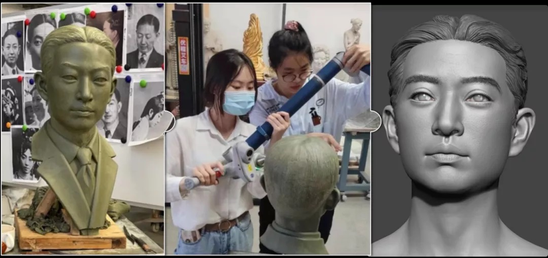二是让雕像真起来,通过高精度激光扫描仪对雕像进行扫描,获得梅先生的基础表情后,通过数字化雕刻流程对模型的细节进行处理,特别是对模型骨像、皮肤细节、毛发细节、眼神光等细节进行补充完善。